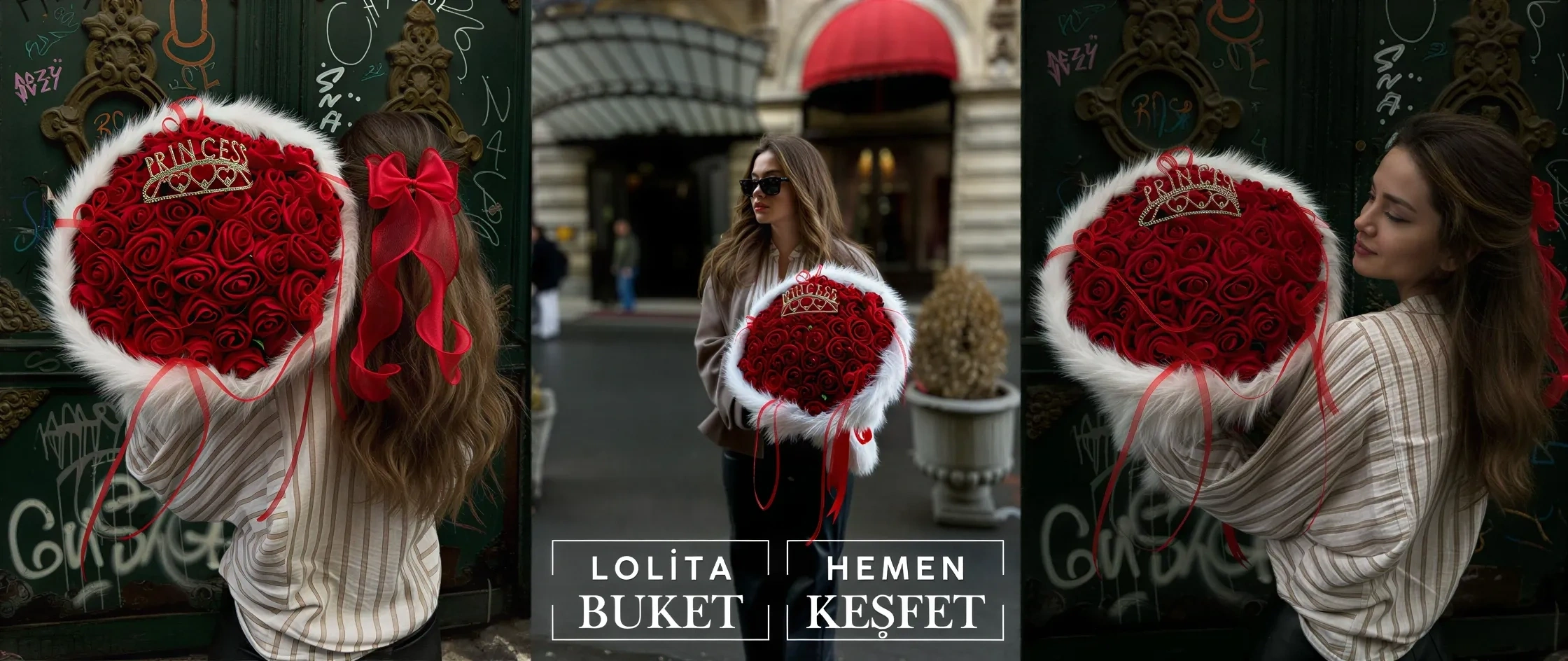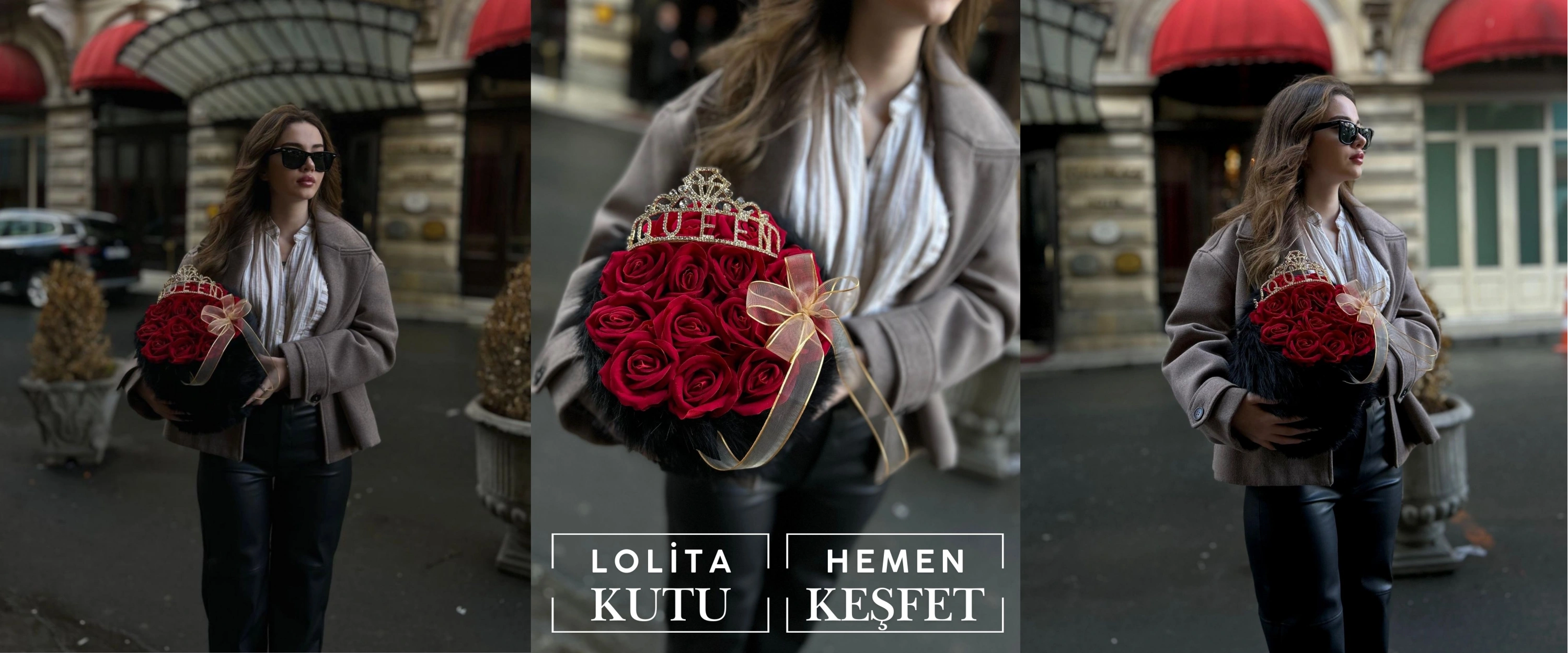 Premium Zincirli Çantada Kırmızı Kadife Güller