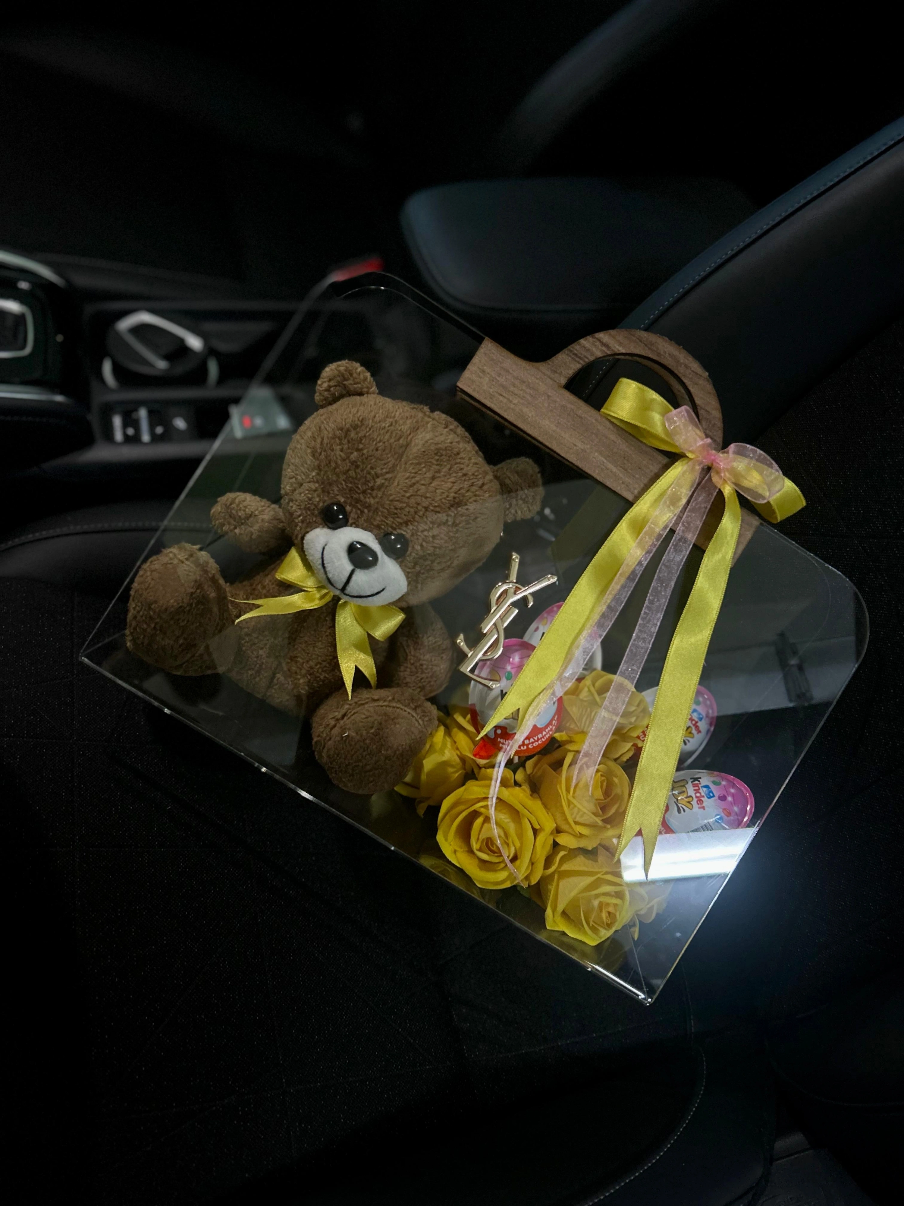 Kalp Kutuda Kadife Güller ve Ayıcık