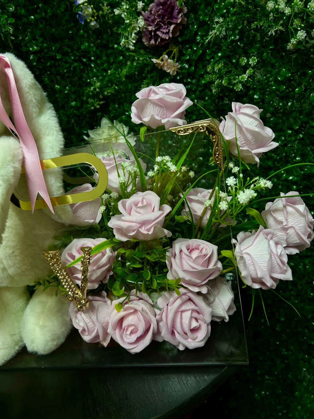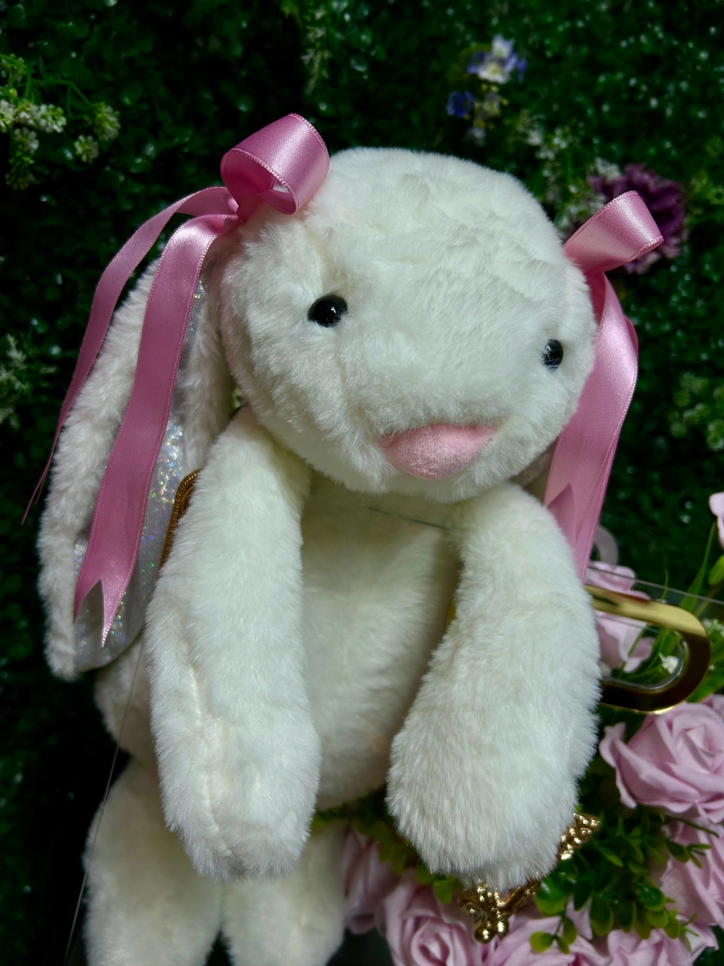 Fancy Flower Premium Çantada Peluş Tavşan ve Pembe Kadife Güller ile sevdiklerinizi mutlu etmenin ve onlara unutulmaz bir sürpriz yapmanın keyfini çıkarın!