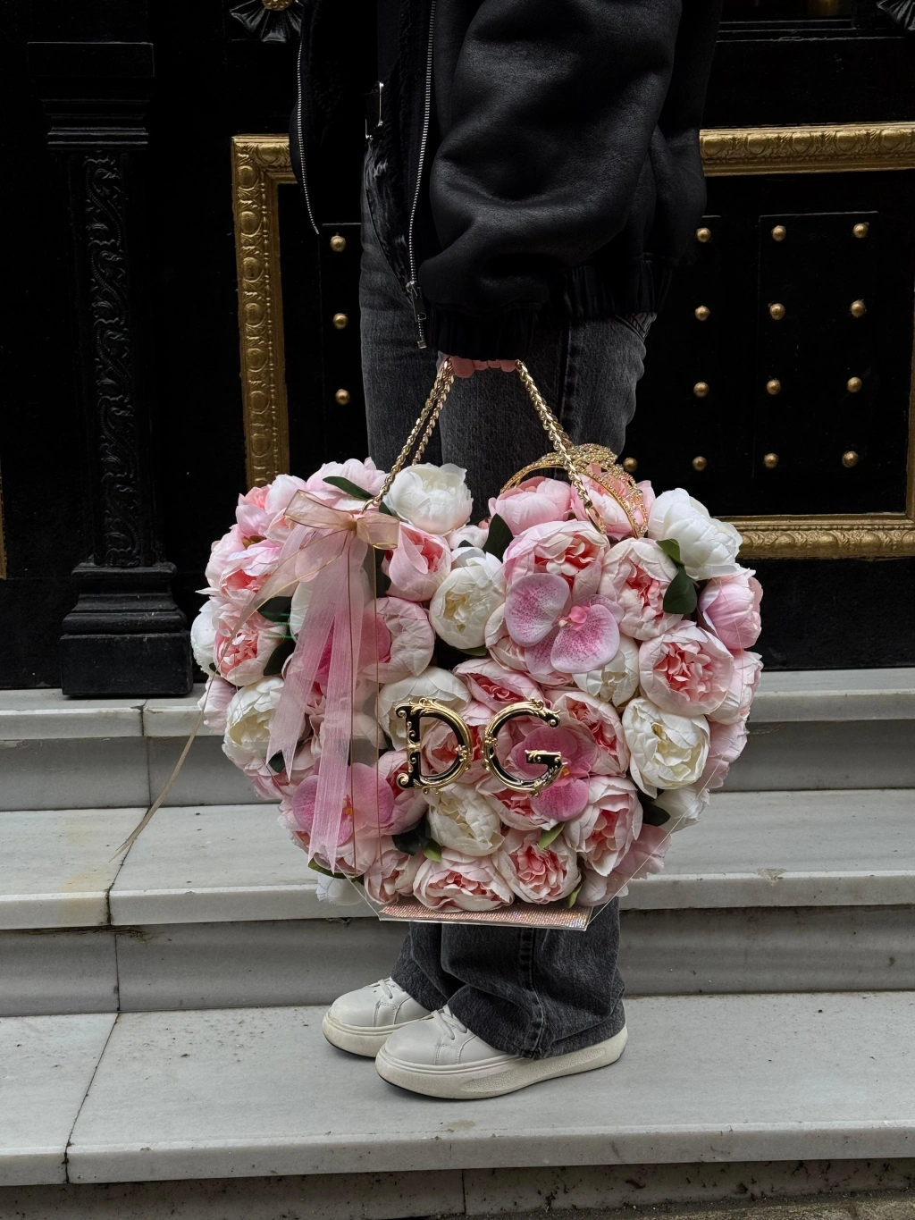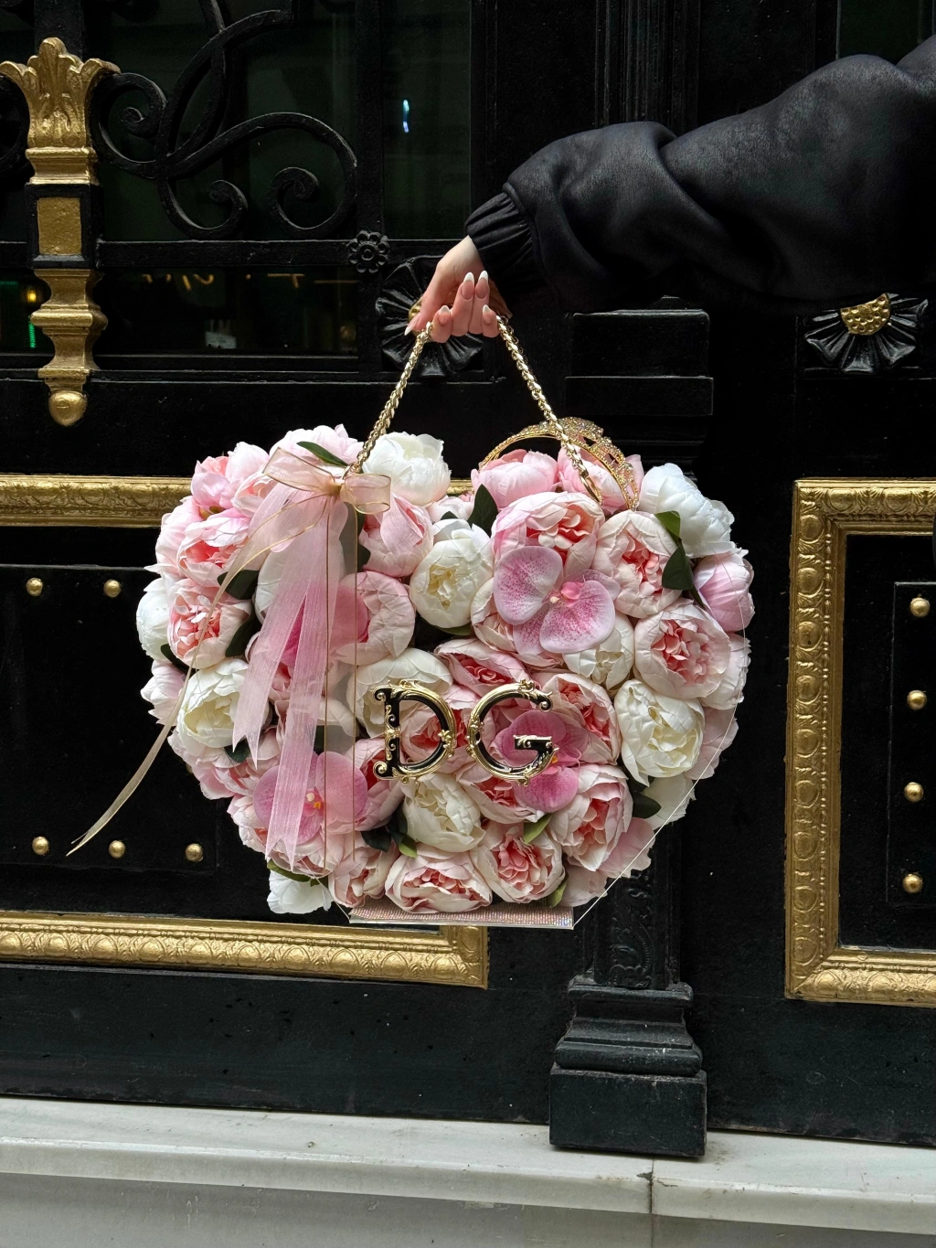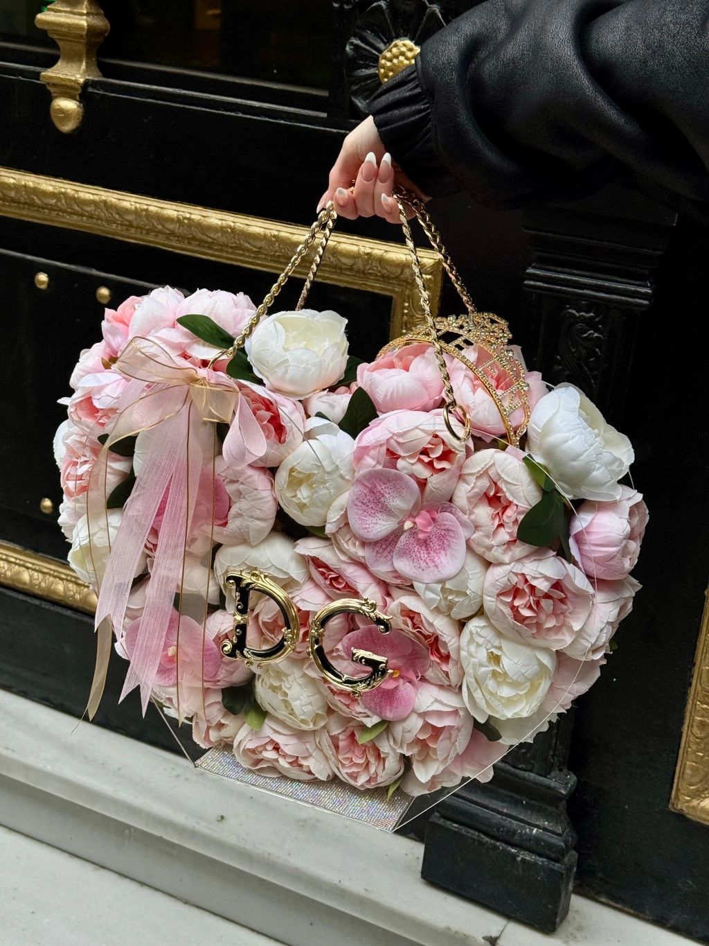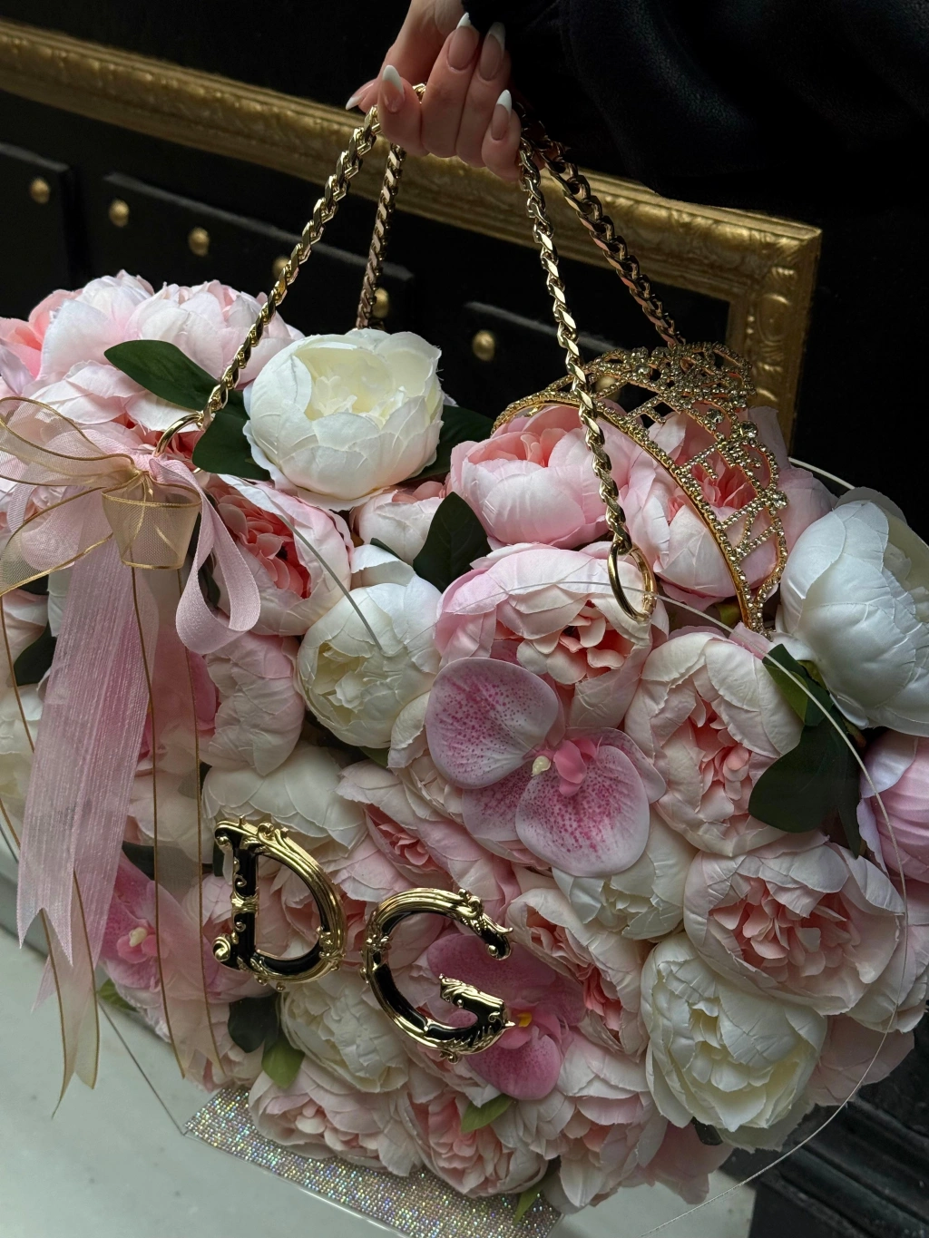 Bu özel çantanın tasarımında kullanılan yüksek kaliteli yapay şakayıklar, doğallığıyla gerçeğini aratmayacak bir görünüm sunar. Gold detaylar ile zenginleştirilen çanta özel günlerin kurtarıcısı olacak!