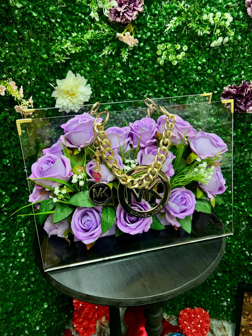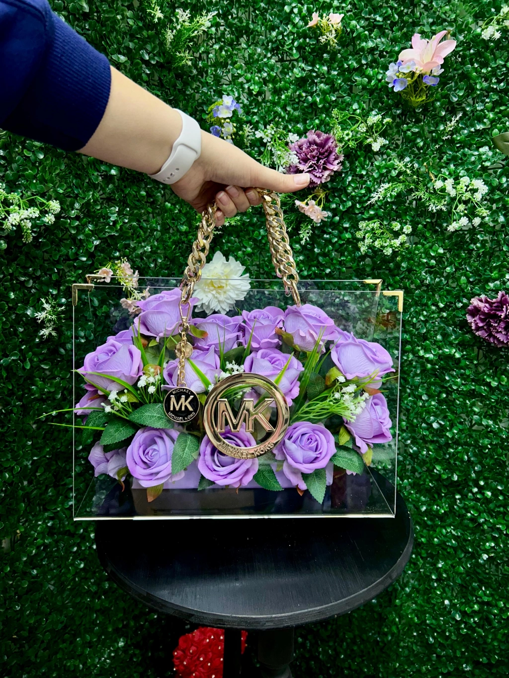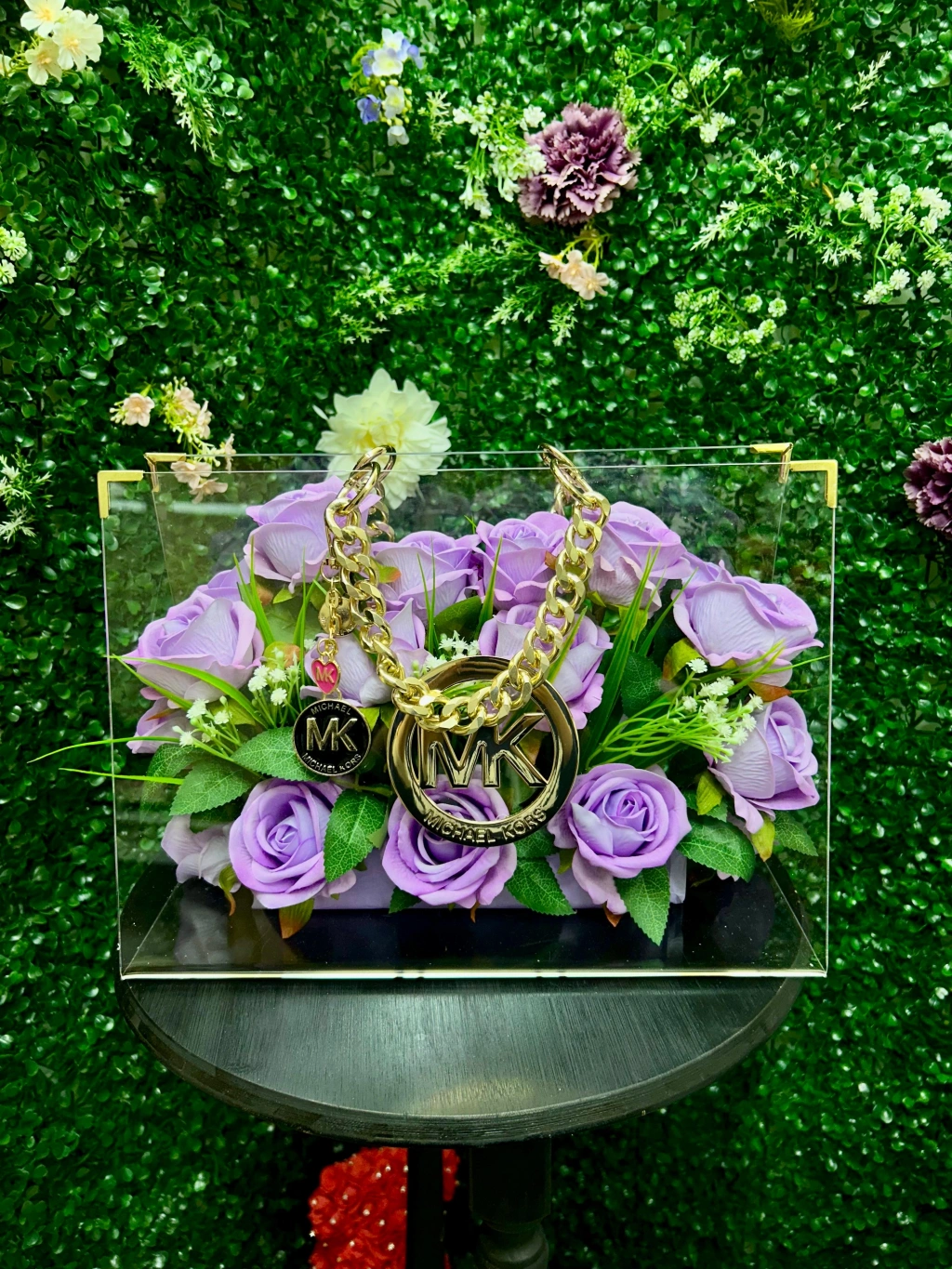 Cesur ve şık bir görünüm için Fancy Flower markasının Premium Zincirli Çantası tam aradığınız parça! Bu özel tasarım çanta, lila kadife güllerle süslenmiş olup göz alıcı bir şıklık sunmaktadır.